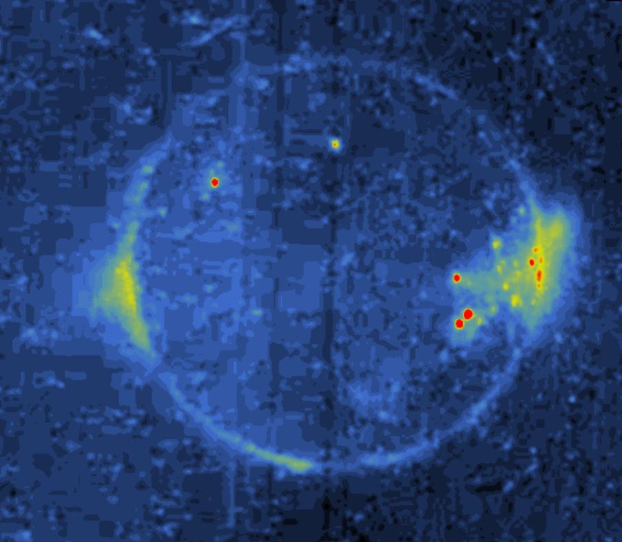 这张图像于1997年5月6日拍摄,当时木卫一在美国宇航局伽利略号航天器第八轨道运行期间处于木星阴影中,揭示了几个动态过程。