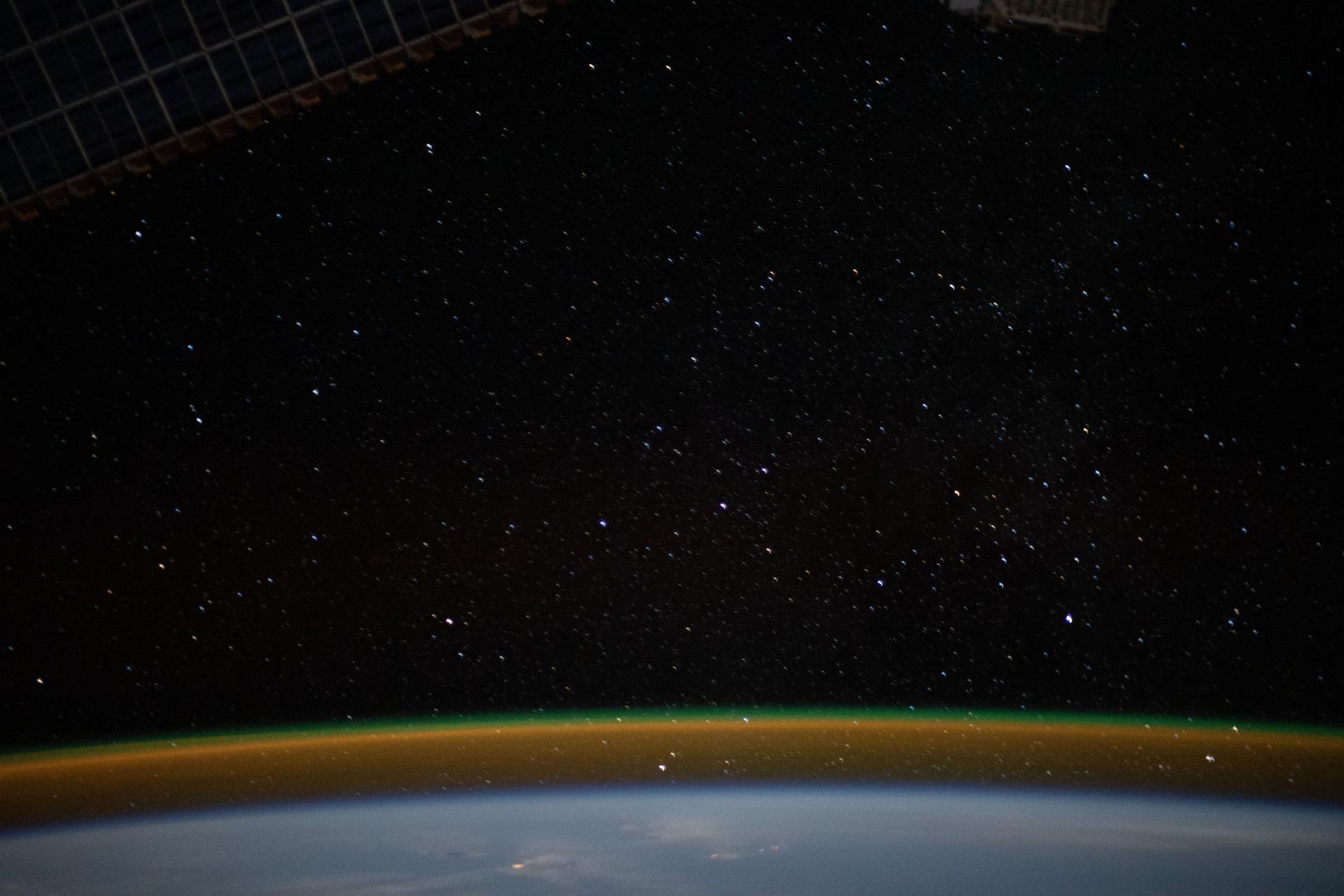 iss 066 e010813(2021年10月24日)--在这张来自国际空间站的照片中,当它在非洲国家塞拉利昂海岸附近大西洋上空262英里处绕轨道运行时,气辉覆盖了星空下的地球地平线。